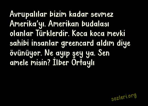Avrupalılar bizim kadar sevmez Amerika’yı. Amerikan budalası olanlar Türklerdir. Koca koca mevki sahibi insanlar greencard aldım diye övünüyor. Ne ayıp şey ya. Sen amele misin? İlber Ortaylı ( Türkçü Sözler )