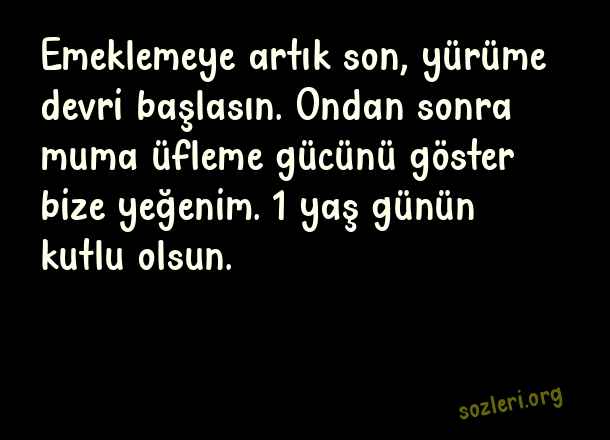 Emeklemeye artık son, yürüme devri başlasın. Ondan sonra muma üfleme gücünü göster bize yeğenim. 1 yaş günün kutlu olsun. ( Yeğene 1 Yaş Doğum Günü )