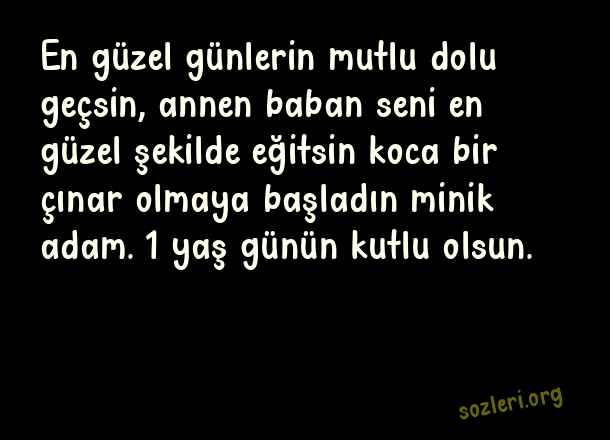 En güzel günlerin mutlu dolu geçsin, annen baban seni en güzel şekilde eğitsin koca bir çınar olmaya başladın minik adam. 1 yaş günün kutlu olsun. ( Yeğene 1 Yaş Doğum Günü )