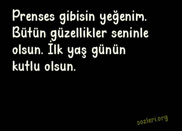 Prenses gibisin yeğenim. Bütün güzellikler seninle olsun. İlk yaş günün kutlu olsun. ( Yeğene 1 Yaş Doğum Günü )