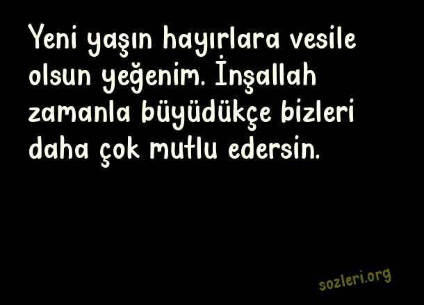 Yeni yaşın hayırlara vesile olsun yeğenim. İnşallah zamanla büyüdükçe bizleri daha çok mutlu edersin. ( Yeğene 1 Yaş Doğum Günü )