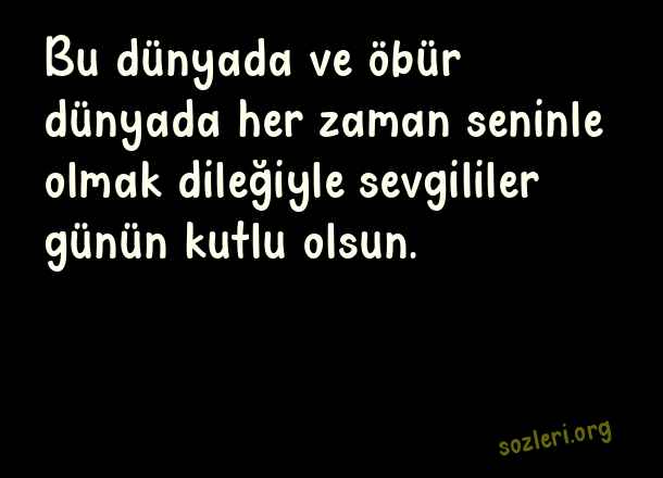 Bu dünyada ve öbür dünyada her zaman seninle olmak dileğiyle sevgililer günün kutlu olsun. ( 14 Şubat Sevgililer Günü )