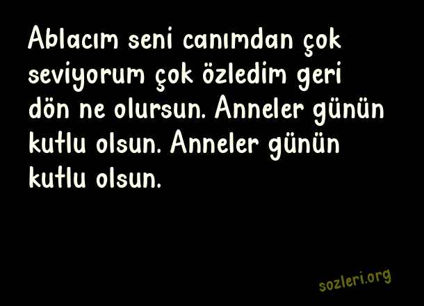 Ablacım seni canımdan çok seviyorum çok özledim geri dön ne olursun. Anneler günün kutlu olsun. Anneler günün kutlu olsun. ( Ablaya Anneler Günü )