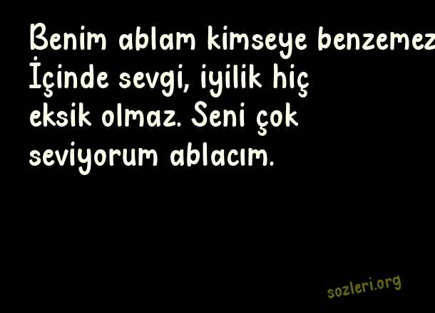Benim ablam kimseye benzemez. İçinde sevgi, iyilik hiç eksik olmaz. Seni çok seviyorum ablacım. ( Abla )