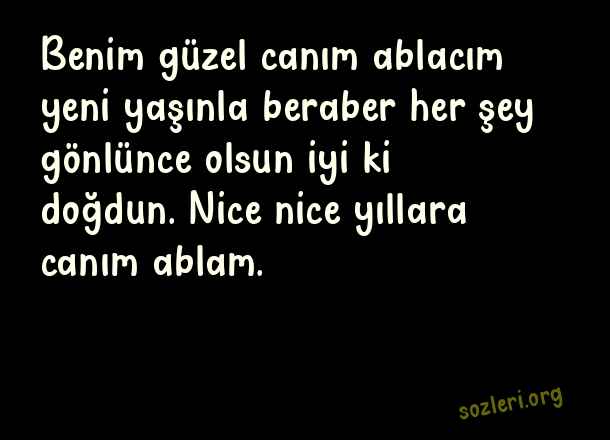 Benim güzel canım ablacım yeni yaşınla beraber her şey gönlünce olsun iyi ki doğdun. Nice nice yıllara canım ablam. ( Ablaya Doğum Günü )