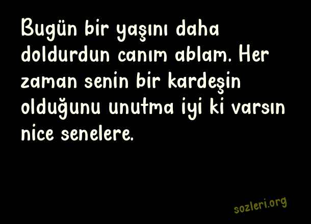 Bugün bir yaşını daha doldurdun canım ablam. Her zaman senin bir kardeşin olduğunu unutma iyi ki varsın nice senelere. ( Ablaya Doğum Günü )