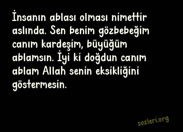 İnsanın ablası olması nimettir aslında. Sen benim gözbebeğim canım kardeşim, büyüğüm ablamsın. İyi ki doğdun canım ablam Allah senin eksikliğini göstermesin. ( Ablaya Doğum Günü )