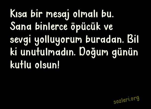 Kısa bir mesaj olmalı bu. Sana binlerce öpücük ve sevgi yolluyorum buradan. Bil ki unutulmadın. Doğum günün kutlu olsun! ( Ablaya Doğum Günü )