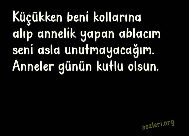Küçükken beni kollarına alıp annelik yapan ablacım seni asla unutmayacağım. Anneler günün kutlu olsun. ( Ablaya Anneler Günü )