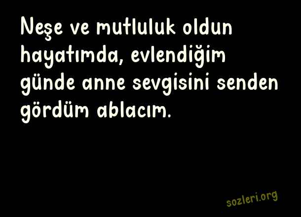 Neşe ve mutluluk oldun hayatımda, evlendiğim günde anne sevgisini senden gördüm ablacım. ( Abla )