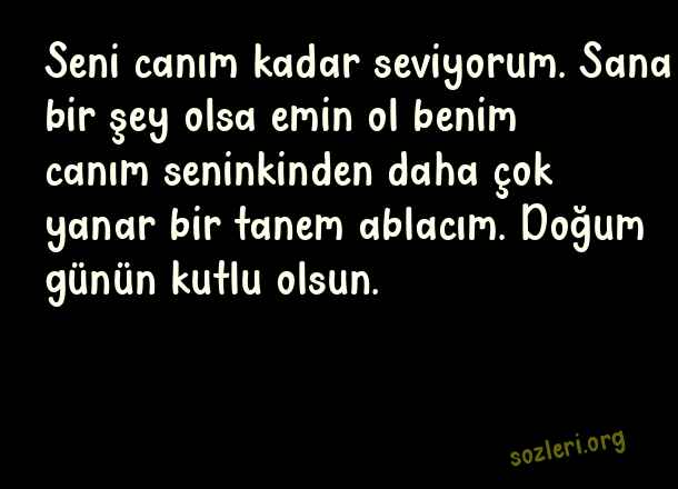 Seni canım kadar seviyorum. Sana bir şey olsa emin ol benim canım seninkinden daha çok yanar bir tanem ablacım. Doğum günün kutlu olsun. ( Ablaya Doğum Günü )