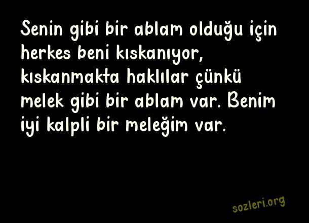 Senin gibi bir ablam olduğu için herkes beni kıskanıyor, kıskanmakta haklılar çünkü melek gibi bir ablam var. Benim iyi kalpli bir meleğim var. ( Abla )
