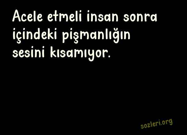 Acele etmeli insan sonra içindeki pişmanlığın sesini kısamıyor. ( Acele )