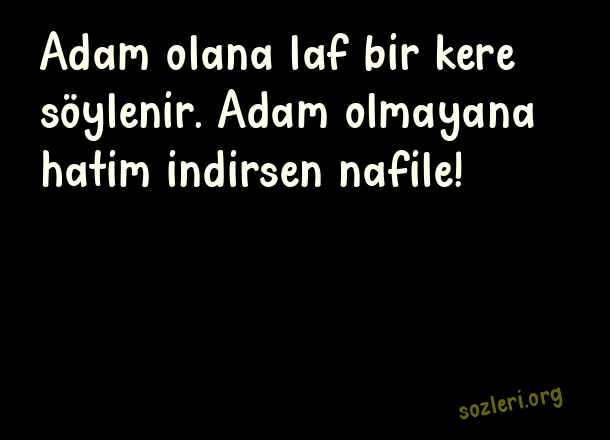 Adam olana laf bir kere söylenir. Adam olmayana hatim indirsen nafile! ( Adam Olmayanlara Ağır Sözler )