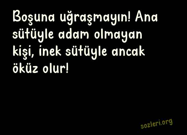 Boşuna uğraşmayın! Ana sütüyle adam olmayan kişi, inek sütüyle ancak öküz olur! ( Adam Olmayanlara Ağır Sözler )