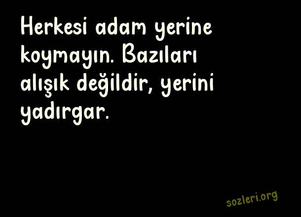 Herkesi adam yerine koymayın. Bazıları alışık değildir, yerini yadırgar. ( Adam Olmayanlara Ağır Sözler )