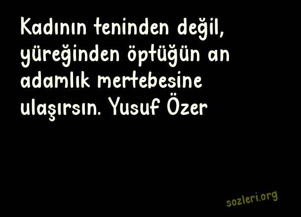 Kadının teninden değil, yüreğinden öptüğün an adamlık mertebesine ulaşırsın. Yusuf Özer ( Adam Olmayanlara Ağır Sözler )