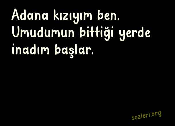 Adana kızıyım ben. Umudumun bittiği yerde inadım başlar. ( Adanalı )