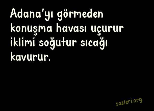 Adana’yı görmeden konuşma havası uçurur iklimi soğutur sıcağı kavurur. ( Adanalı )