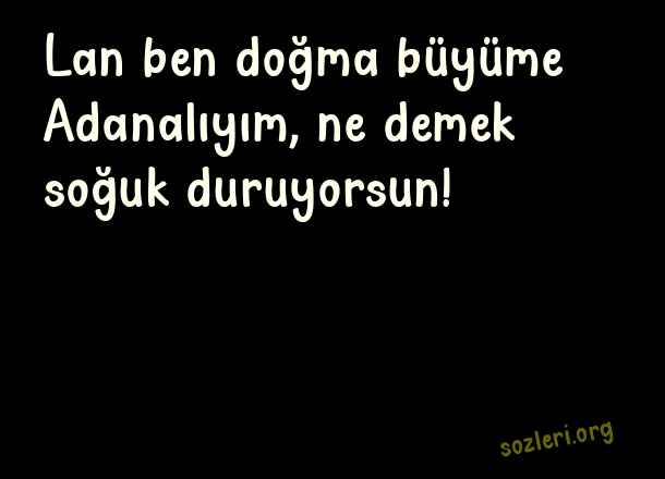 Lan ben doğma - Adanalı Sözleri .. Lan ben doğma büyüme Adanalıyım, ne demek soğuk duruyorsun! ( Adanalı )