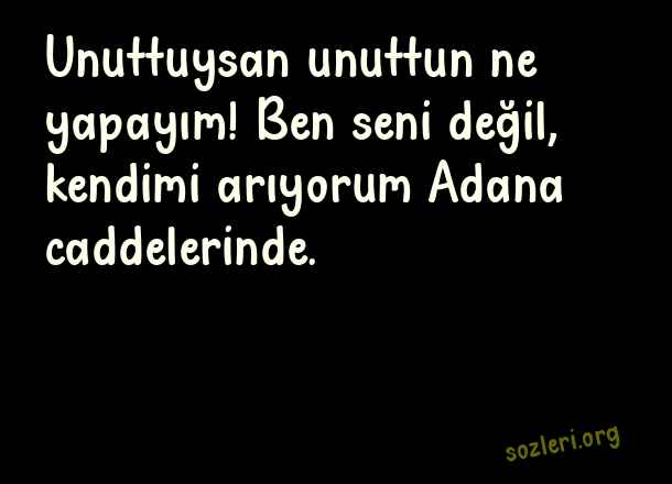 Unuttuysan unuttun ne yapayım! Ben seni değil, kendimi arıyorum Adana caddelerinde. ( Adanalı )