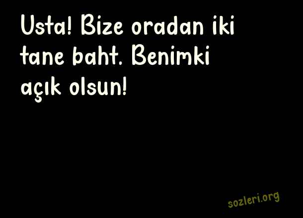 Usta! Bize oradan iki tane baht. Benimki açık olsun! ( Adanalı )