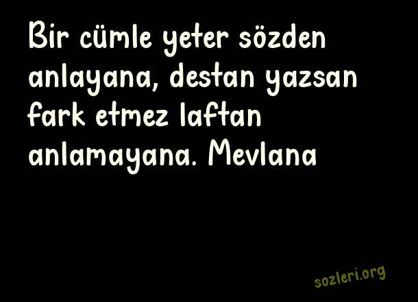 Bir cümle yeter sözden anlayana, destan yazsan fark etmez laftan anlamayana. Mevlana ( Ahlaksızlara Sözler )