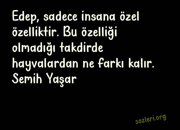 Edep, sadece insana özel özelliktir. Bu özelliği olmadığı takdirde hayvalardan ne farkı kalır. Semih Yaşar ( Ahlaksızlara Sözler )