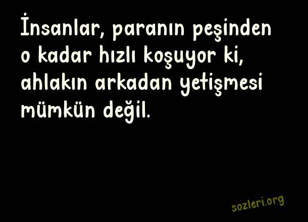İnsanlar, paranın peşinden o kadar hızlı koşuyor ki, ahlakın arkadan yetişmesi mümkün değil. ( Ahlaksızlara Sözler )