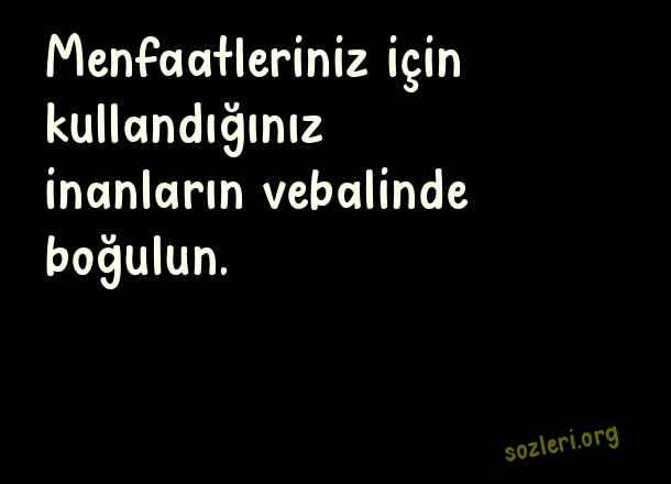 Menfaatleriniz için kullandığınız inanların vebalinde boğulun. ( Ahlaksızlara Sözler )