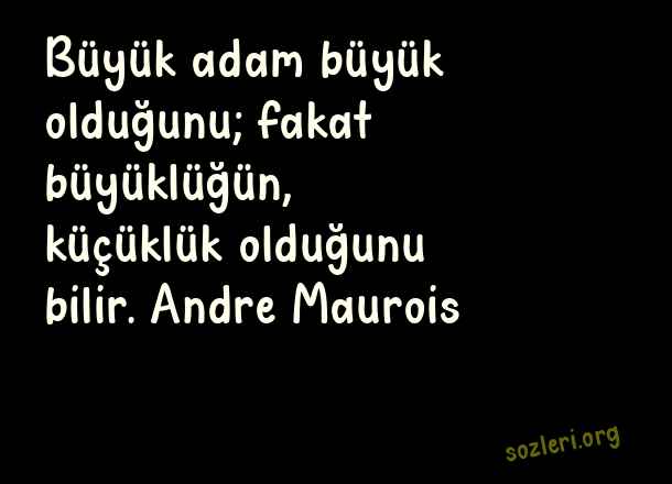 Büyük adam büyük olduğunu; fakat büyüklüğün, küçüklük olduğunu bilir. Andre Maurois ( Alçak Gönüllülük )