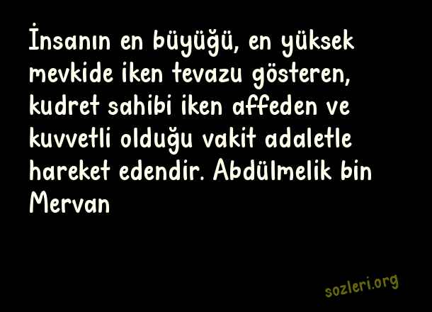 İnsanın en büyüğü, en yüksek mevkide iken tevazu gösteren, kudret sahibi iken affeden ve kuvvetli olduğu vakit adaletle hareket edendir. Abdülmelik bin Mervan ( Alçak Gönüllülük )