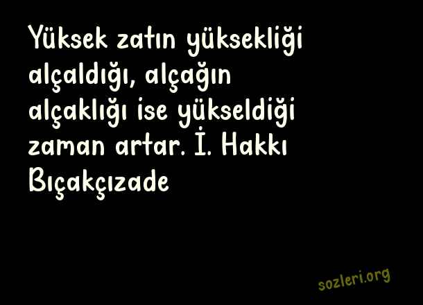 Yüksek zatın yüksekliği alçaldığı, alçağın alçaklığı ise yükseldiği zaman artar. İ. Hakkı Bıçakçızade ( Alçak Gönüllülük )