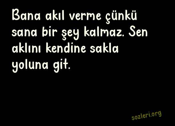 Bana akıl verme çünkü sana bir şey kalmaz. Sen aklını kendine sakla yoluna git. ( Aldatan Sevgiliye Kapak Sözler )