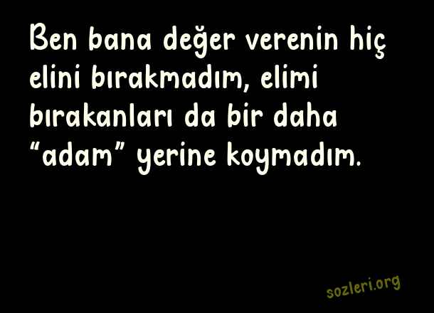Ben bana değer verenin hiç elini bırakmadım, elimi bırakanları da bir daha “adam” yerine koymadım. ( Aldatan Sevgiliye Kapak Sözler )