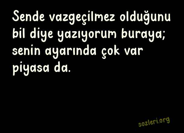Sende vazgeçilmez olduğunu bil diye yazıyorum buraya; senin ayarında çok var piyasa da. ( Aldatan Sevgiliye Kapak Sözler )