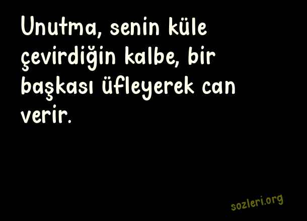 Unutma, senin küle çevirdiğin kalbe, bir başkası üfleyerek can verir. ( Aldatan Sevgiliye Kapak Sözler )