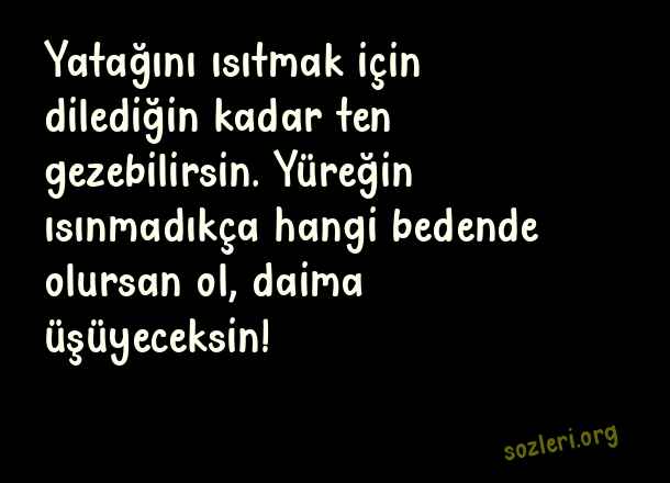 Yatağını ısıtmak için dilediğin kadar ten gezebilirsin. Yüreğin ısınmadıkça, hangi bedende olursan ol daima üşüyeceksin!