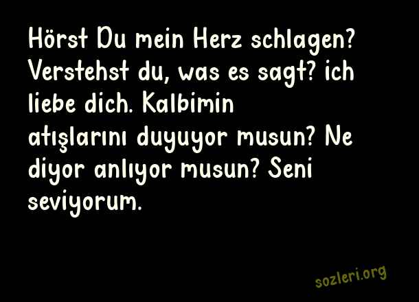 Hörst Du mein Herz schlagen? Verstehst du, was es sagt? ich liebe dich. Kalbimin atışlarını duyuyor musun? Ne diyor anlıyor musun? Seni seviyorum. ( Almanca Aşk )