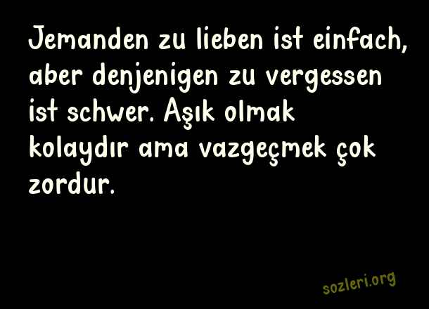 Jemanden zu lieben ist einfach, aber denjenigen zu vergessen ist schwer. Aşık olmak kolaydır ama vazgeçmek çok zordur. ( Almanca Aşk )