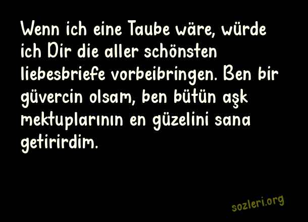 Wenn ich eine Taube wäre, würde ich Dir die aller schönsten liebesbriefe vorbeibringen. Ben bir güvercin olsam, ben bütün aşk mektuplarının en güzelini sana getirirdim. ( Almanca Aşk )