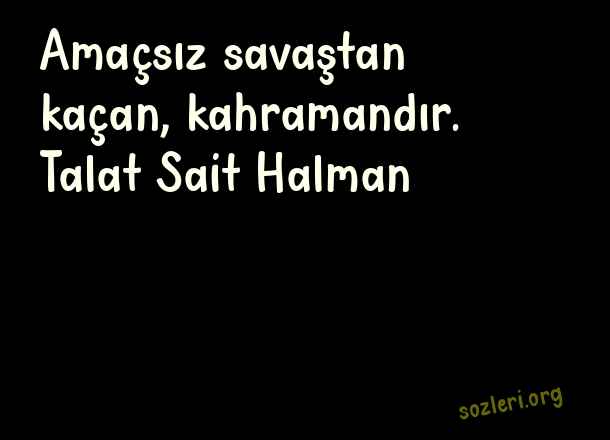Amaçsız savaştan kaçan, kahramandır. Talat Sait Halman ( Amaç )