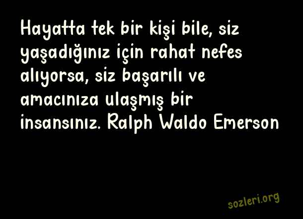 Hayatta tek bir kişi bile, siz yaşadığınız için rahat nefes alıyorsa, siz başarılı ve amacınıza ulaşmış bir insansınız. Ralph Waldo Emerson ( Amaç )