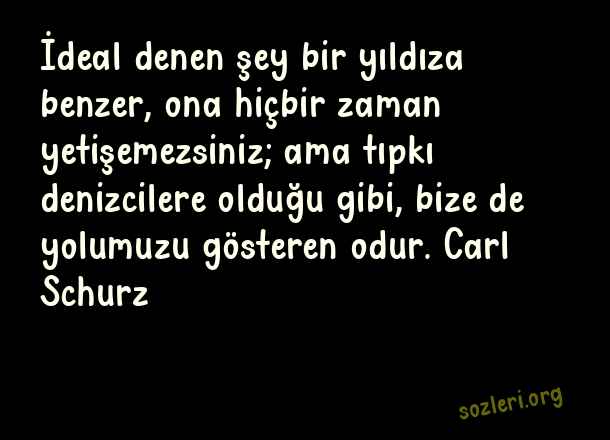 İdeal denen şey bir yıldıza benzer, ona hiçbir zaman yetişemezsiniz; ama tıpkı denizcilere olduğu gibi, bize de yolumuzu gösteren odur. Carl Schurz ( Amaç )