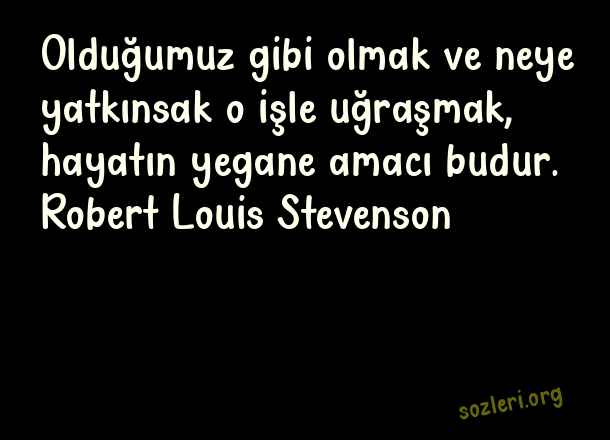 Olduğumuz gibi olmak ve neye yatkınsak o işle uğraşmak, hayatın yegane amacı budur. Robert Louis Stevenson ( Amaç )