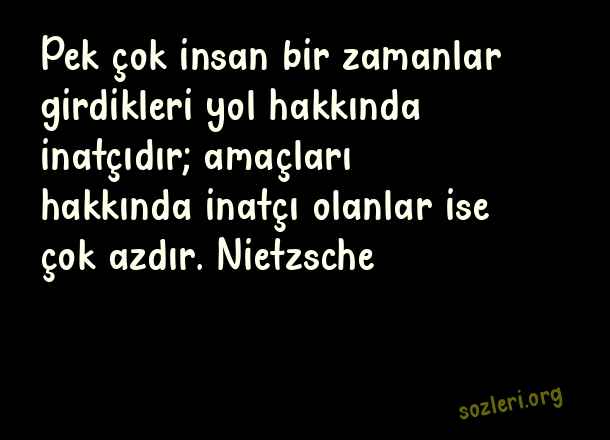 Pek çok insan bir zamanlar girdikleri yol hakkında inatçıdır; amaçları hakkında inatçı olanlar ise çok azdır. Nietzsche ( Amaç )