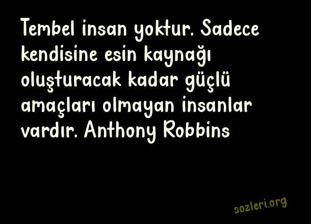 Tembel insan yoktur. Sadece kendisine esin kaynağı oluşturacak kadar güçlü amaçları olmayan insanlar vardır. Anthony Robbins ( Amaç )