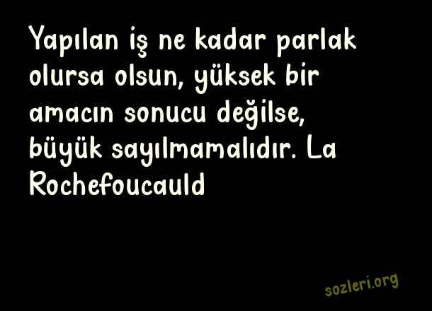 Yapılan iş ne kadar parlak olursa olsun, yüksek bir amacın sonucu değilse, büyük sayılmamalıdır. La Rochefoucauld ( Amaç )