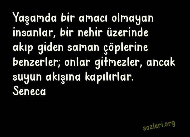 Yaşamda bir amacı olmayan insanlar, bir nehir üzerinde akıp giden saman çöplerine benzerler; onlar gitmezler, ancak suyun akışına kapılırlar. Seneca ( Amaç )