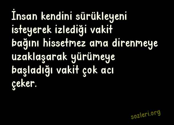 İnsan kendini sürükleyeni isteyerek izlediği vakit bağını hissetmez ama direnmeye uzaklaşarak yürümeye başladığı vakit çok acı çeker. ( Andre Gide )